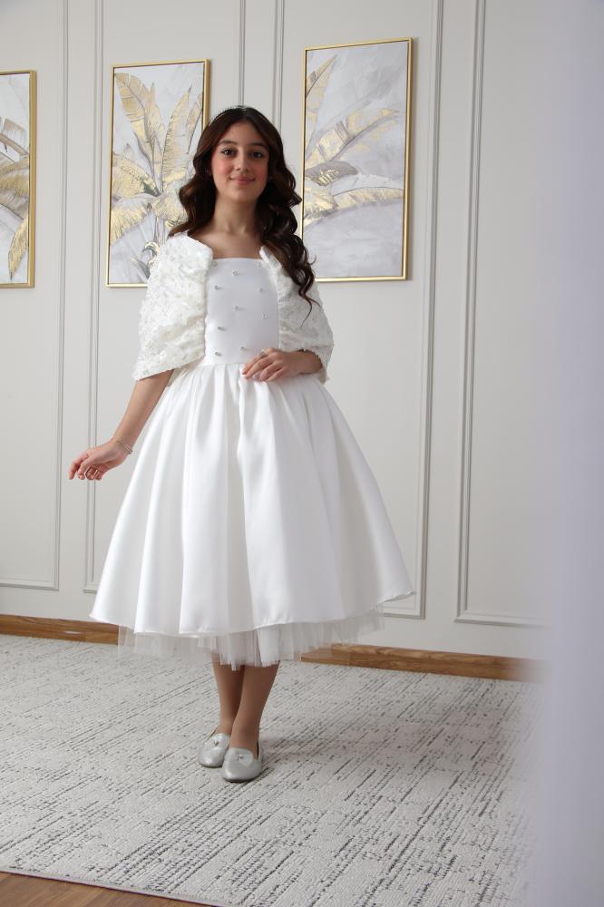 إذا كنتِ تبحثين عن إطلالة ناعمة ومميزة، ففستان "براءة الأبيض" هو الخيار المثالي لكِ! يجسد الأناقة والبساطة بأسلوب رائع.