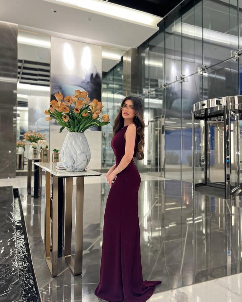 هذي الفستان بلون بنفسجي غامق، بتصميم بسيط وأنيق يعكس الأنوثة. القصة الضيقة تحتضن القوام بشكل جذاب، مثالي للمناسبات الرسمية والسهرات. إطلالة تجمع بين الرقي والاحتشام!
