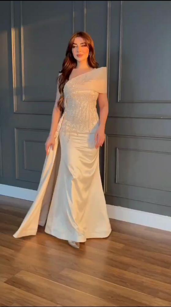 يا هلا! إذا كنتِ تبحثين عن فستان يخليكي تتألقين في المناسبات، هذا الفستان بلون البيج هو الخيار المثالي لكِ.