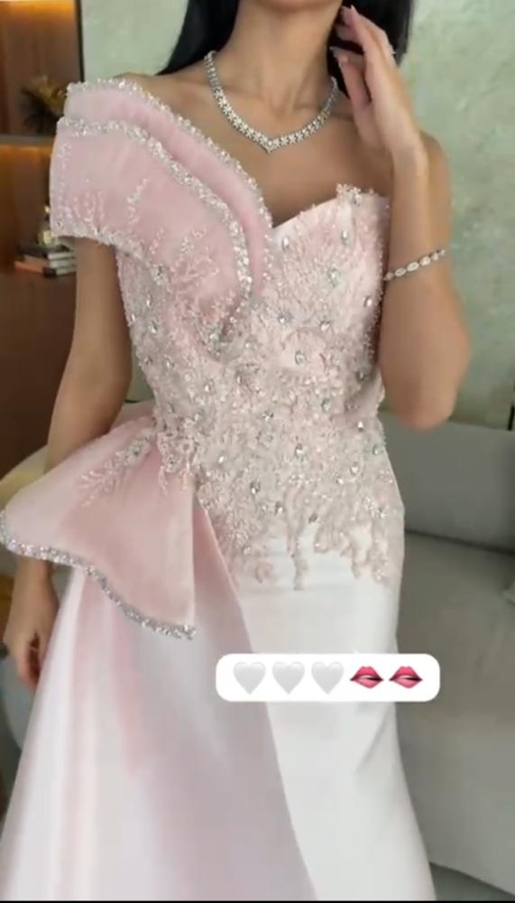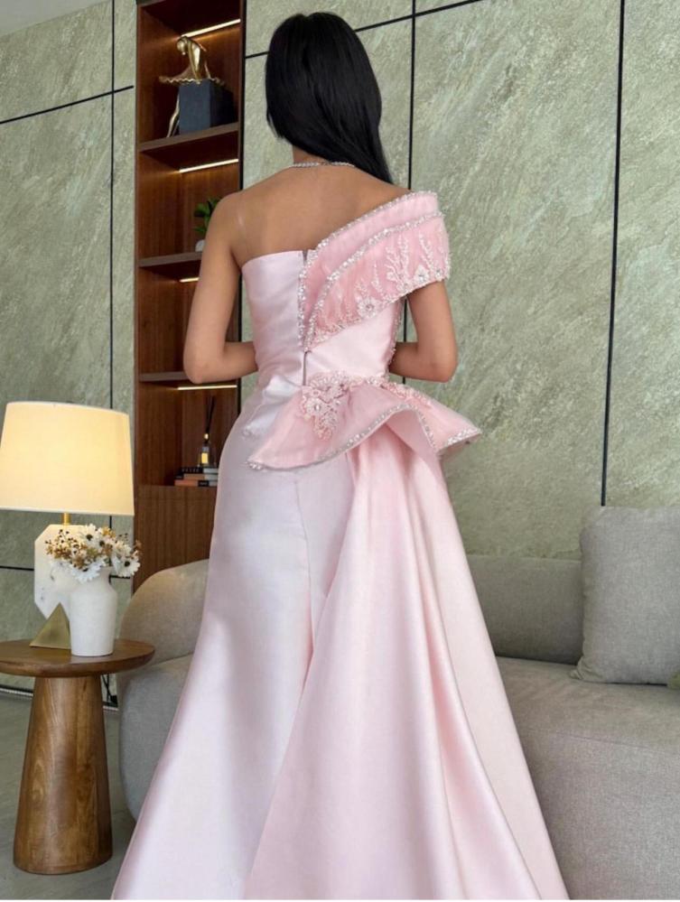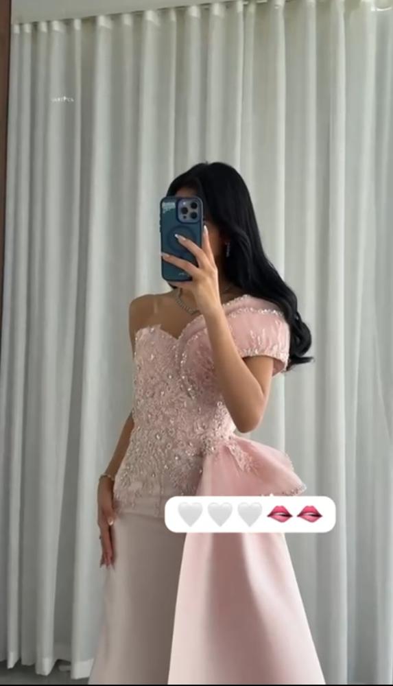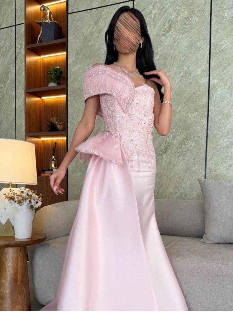 هذي الفستان بلون وردي فاتح، بتصميم أنيق مع تفاصيل مزخرفة تضيف لمسة فاخرة. الأكمام المنسدلة والجزء الجانبي المنحني يعطون إطلالة مميزة. القماش ناعم ومتدفق، مثالي للمناسبات والسهرات. إطلالة تجمع بين الأنوثة والرقي!
